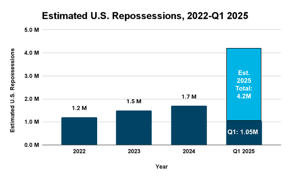 *2025 figure reflects repossessions through April only.